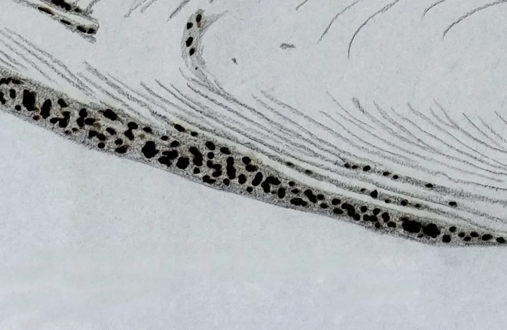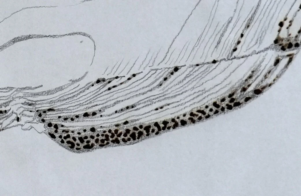 Otolith Stories - Series of drawings - Graphite on burnt Shoji paper (detail)